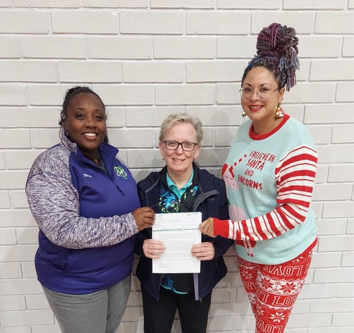 Candace Lunford (right), a YRUSA Board member giving a grant to the 904 Elite Volleyball Club in Orange Park for assistance for a middle school student to play in the club. Destiny Brightman (left), is the founder of 904 Elite VBC.
